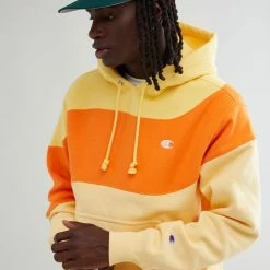 Cheap 👏 Men’s Champion UO Exclusive Colorblock Hoodie Sweatshirt Yellow Multi ✨