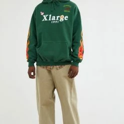 Budget 🛒 Men’s XLARGE Pigment Dyed Puff Print Hoodie Sweatshirt Green 🌟
