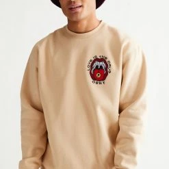 Deals 👍 Men’s OBEY UO Exclusive Love Is A Drug Crew Neck Sweatshirt Cream ⌛