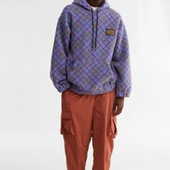 Deals 👍 Men’s Pas De Mer Patterned Fleece Hoodie Sweatshirt Purple 🥰