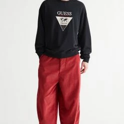 Outlet 🥰 Men’s GUESS ORIGINALS Ryan Leather Triangle Crew Neck Sweatshirt Black 😀
