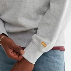 Classic look pullover crew neck sweatshirt by Levi’s in a cotton & poly blend. Crew neck style with raglan sleeves and fitted with ribbing trims. Topped with a logo at the sleeve.