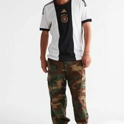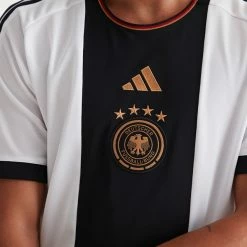 Jersey tee by adidas with 3-stripe detailing at the shoulders and fitted with contrast ribbing trims at the sleeves & crew neck. Colorblock stripe tee topped with team logo embroidery at the chest.