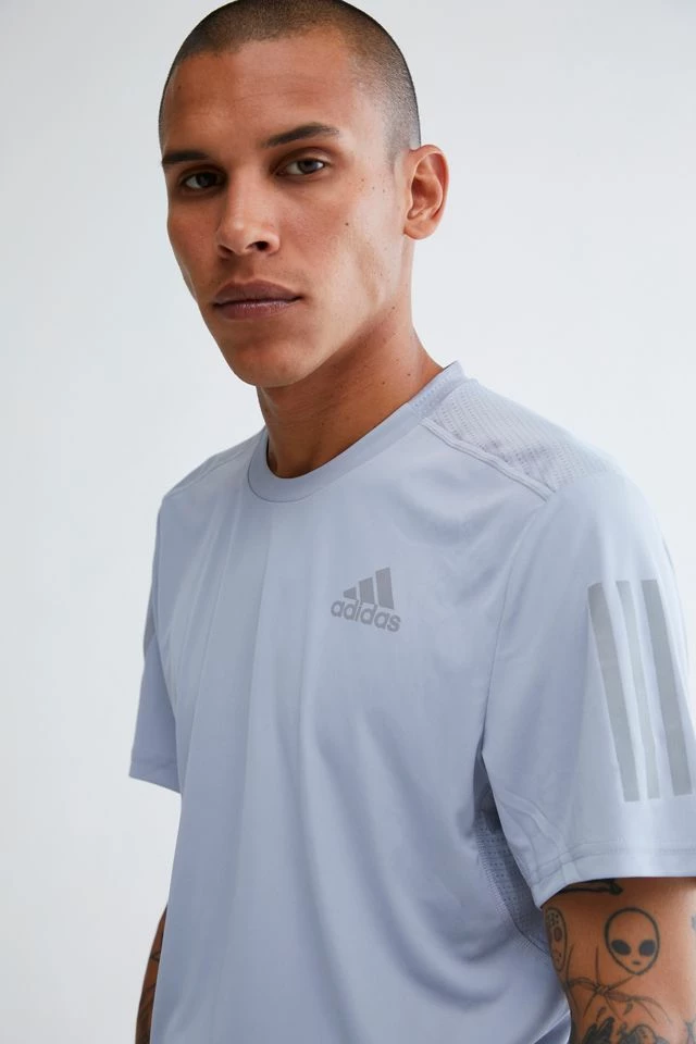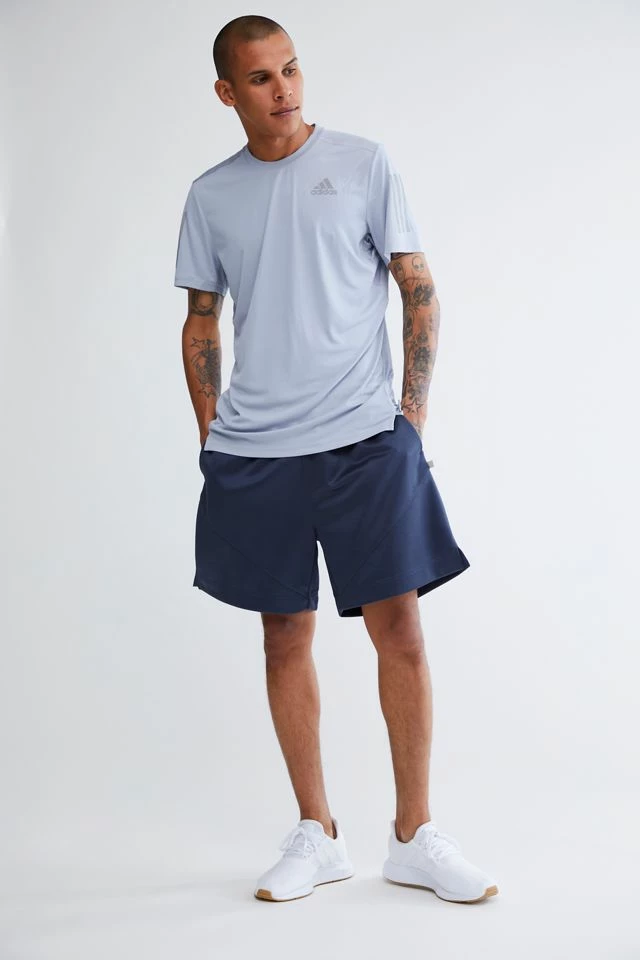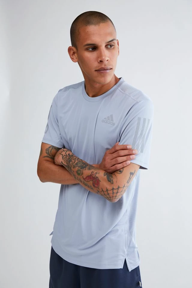 T-shirt by adidas in a regular fit & crafted from a cotton poly blend. Logo-topped tee with striped accents at the short sleeves. Finished with a crew neck.