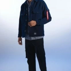 Button-down wool blend shirt by Alpha Industries. Boxy fit and topped with flap pockets. Includes a woven logo label and a classic “Remove Before Flight” ribbon at the sleeve.