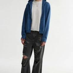 Lightweight hoodie from UO in a shrunken fit that’s perfect for layering. Garment-washed for a lived-in look with a zip front and kanga pockets. Only at Urban Outfitters.
