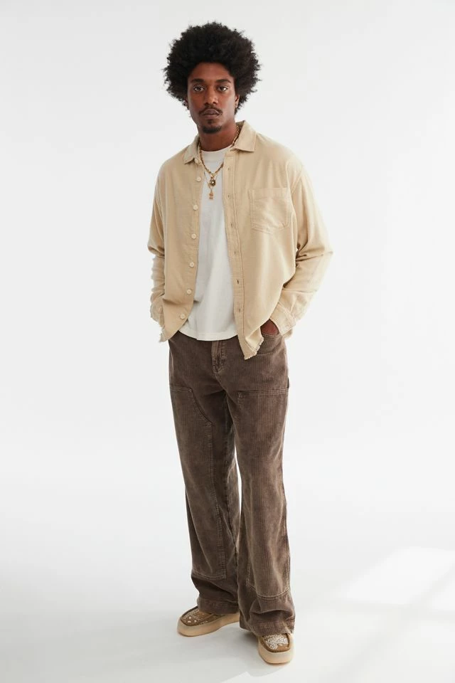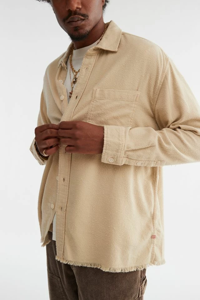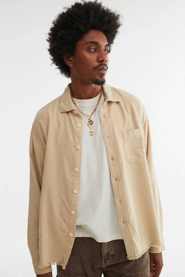 Button-down shirt by BDG in a cotton fabrication. Long sleeve style with a left chest pocket and tab collar. Urban Outfitters exclusive.