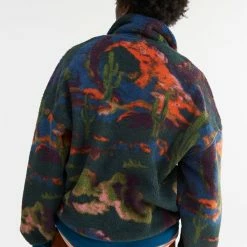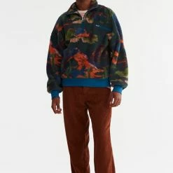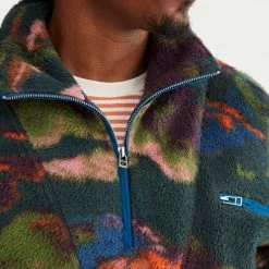 Patterned cozy fleece sweatshirt by BDG. Fitted with a partial zip at the front with hand pockets and a zip pocket at the chest. Urban Outfitters exclusive.