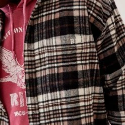 Signature flannel shirt by BDG, topped with a check print and embroidered logo detail. Button-through style Ft. a spread collar, drop shoulders, long sleeves, a single chest pocket and button cuffs. Urban Outfitters exclusive.