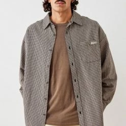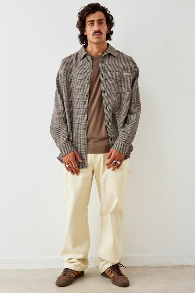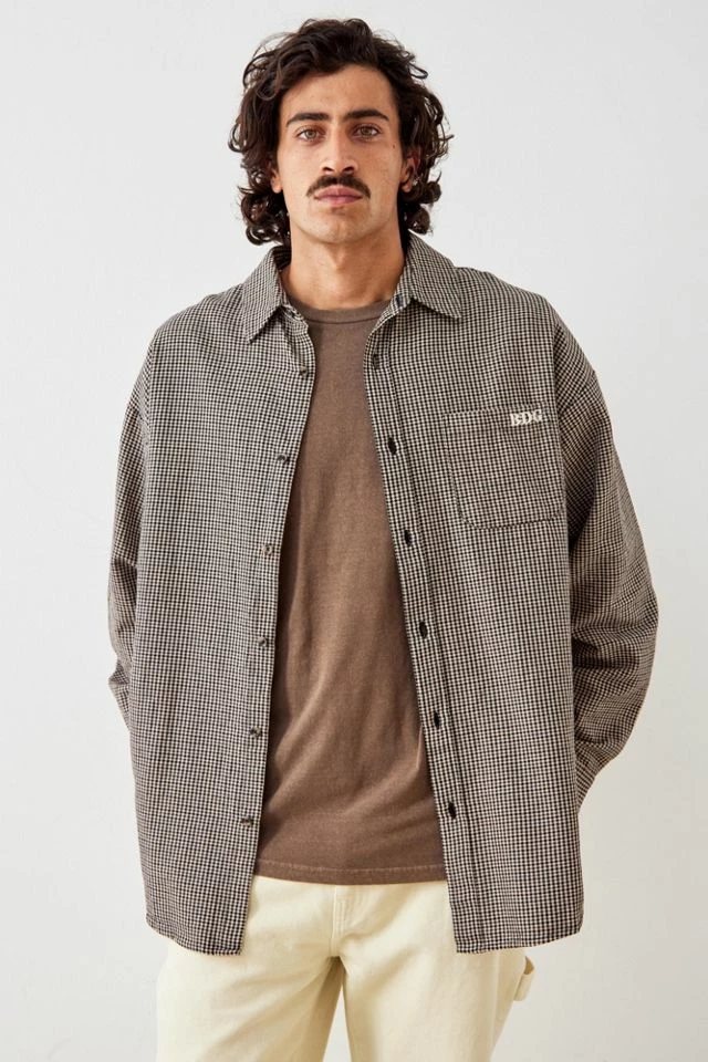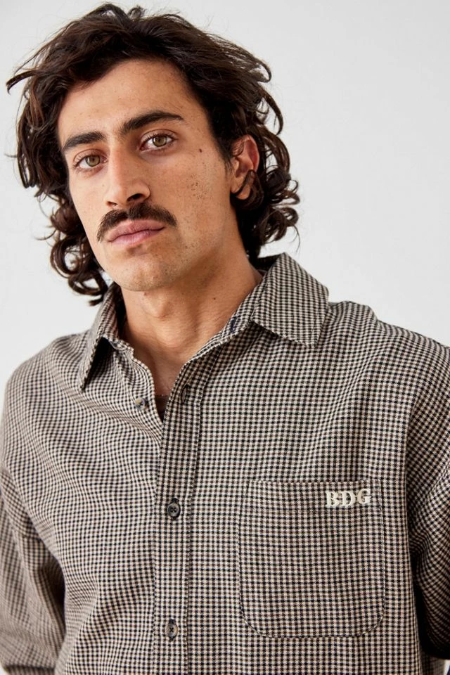 Staple over shirt by BDG, complete with a cosy cotton fabrication with a mini all-over houndstooth pattern. Relaxed style Ft. a spread collar, drop shoulders, long sleeves with adjustable cuffs, a button placket and a patch pocket with embroidered logo detail to chest. Only at Urban Outfitters.
