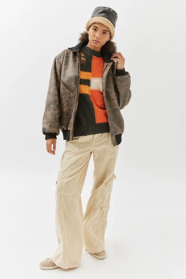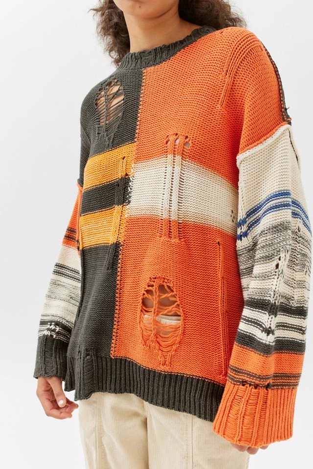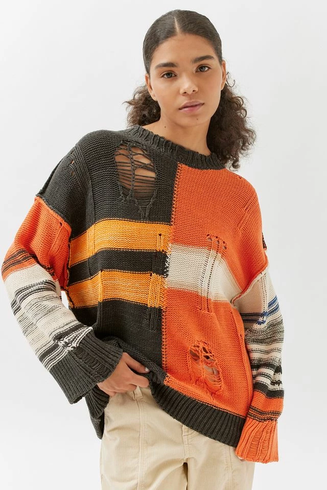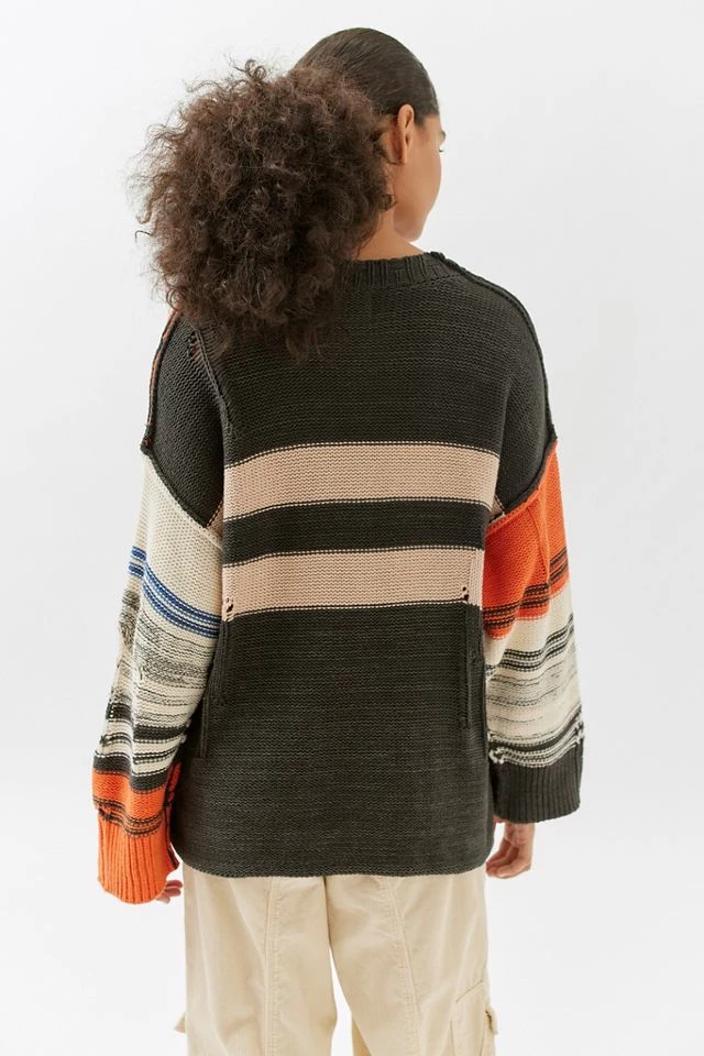 BDG sweater with major distressing throughout. Pullover style with a relaxed fit plus a crew neckline and finished with ribbed trim. Urban Outfitters exclusive.