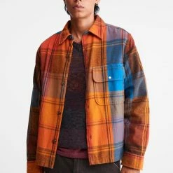 Cotton and wool blend overshirt by the essential BDG label. Button front shirt with long sleeves and topped with a flap pocket at the left chest. Topped with an allover plaid pattern. Urban Outfitters exclusive.