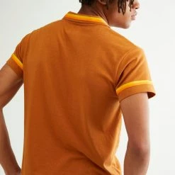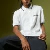 Retro look short sleeve polo shirt by BDG. Features striped trim detailing. Fitted with a partial button closure at the front and tab collar. Only at Urban Outfitters.