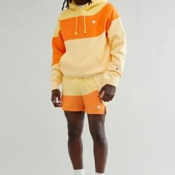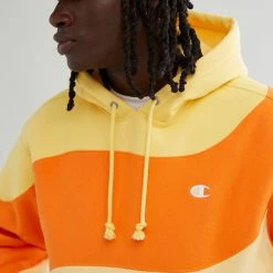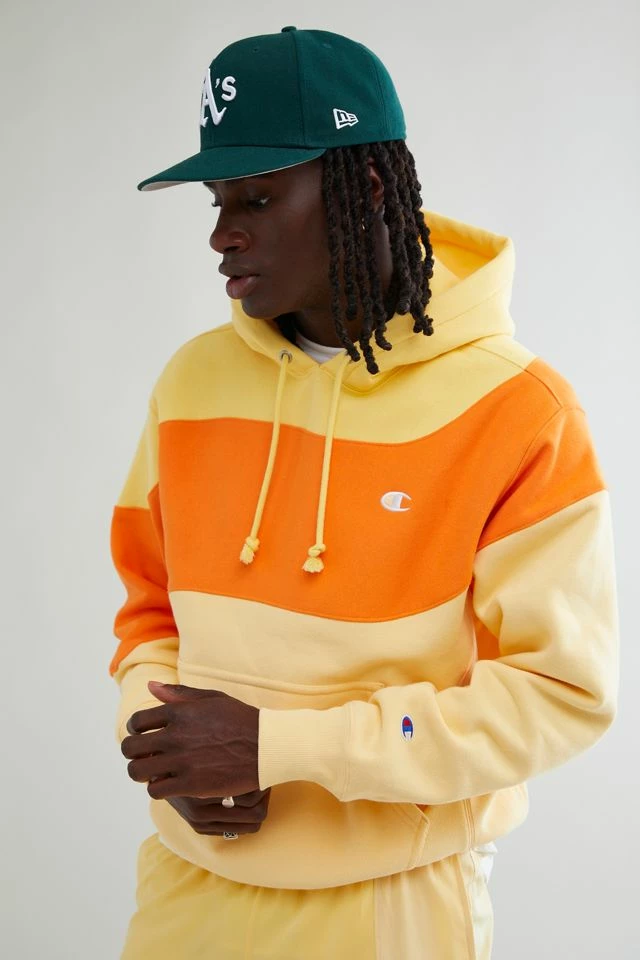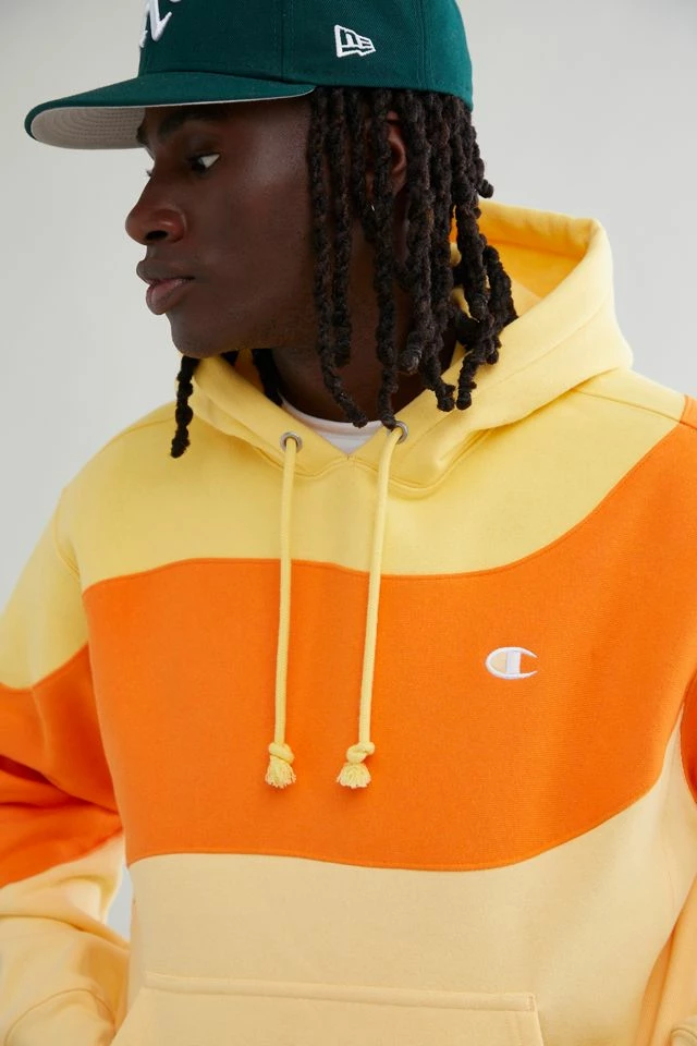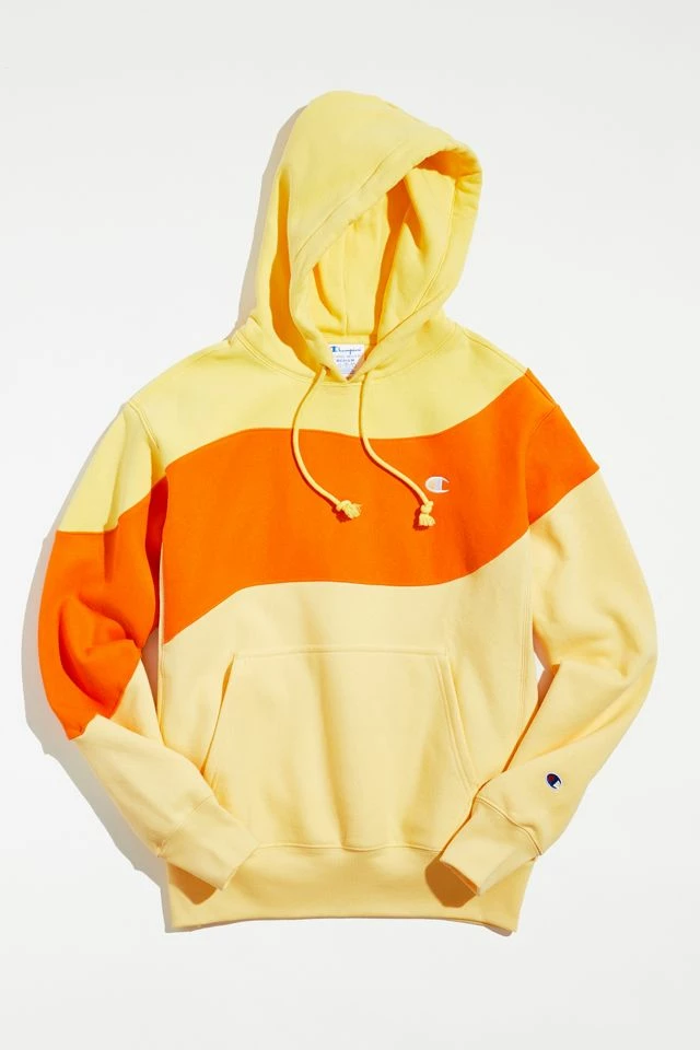 Curvy colorblock sweatshirt by Champion in the brand’s signature reverse weave fabrication. Includes an adjustable hood, kanga pocket and ribbed knit trims. Available exclusively at Urban Outfitters.