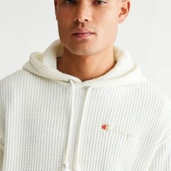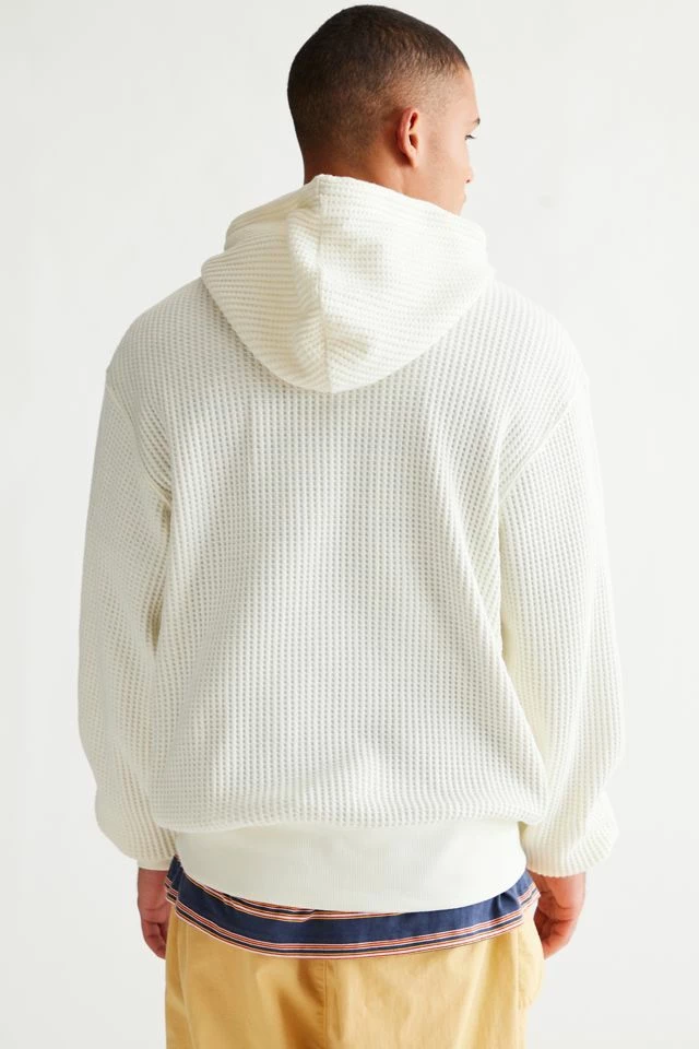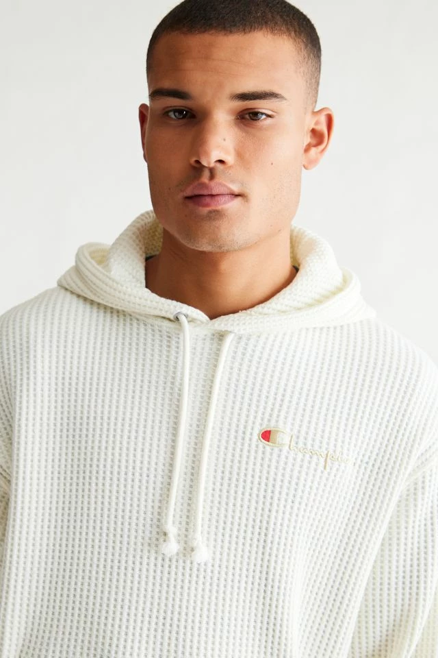 Pullover hoodie by Champion with a textured waffle knit fabrication. Fitted with an adjustable hood, pouch front pocket and ribbed knit trims. Urban Outfitters exclusive.