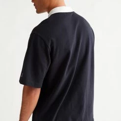 Colorblock short sleeve polo shirt by Champion. Cut in a longline silhouette. Features a partial zip at the front and tab collar. Topped with logo text at the left chest.
