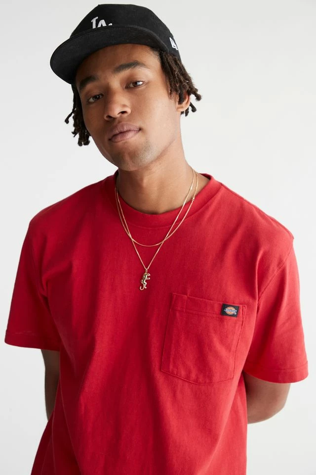 Heavyweight cotton t-shirt by Dickies with a pocket at the left chest. Topped with a logo label. Cut in a regular fit with short sleeves and a ribbed knit crew neck.