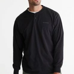 Classic Henley style long sleeve tee from Dickies. Cotton shirt with a crew neck and partial button closure. Topped with logo text at the left chest.