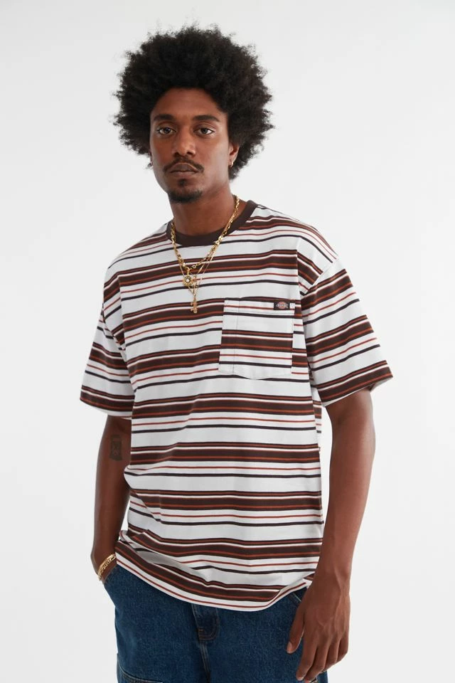 Striped t-shirt by Dickies in a 100% cotton fabrication. Cut in a standard fit with short sleeves & ribbed knit crew neck. Topped with a pocket at the left chest.
