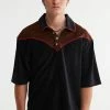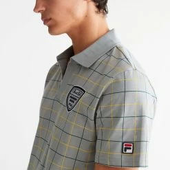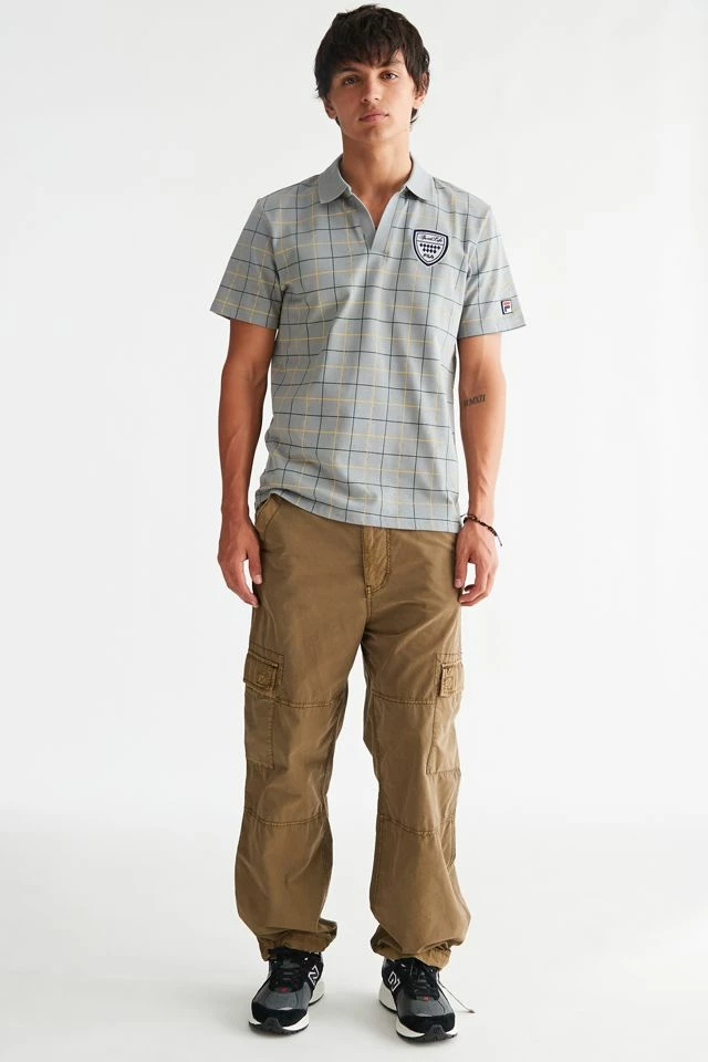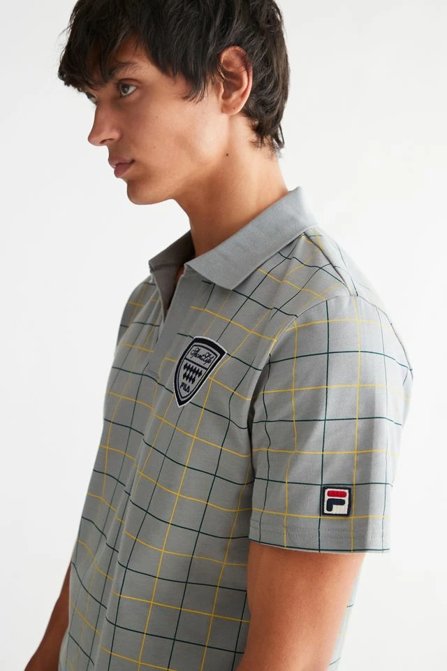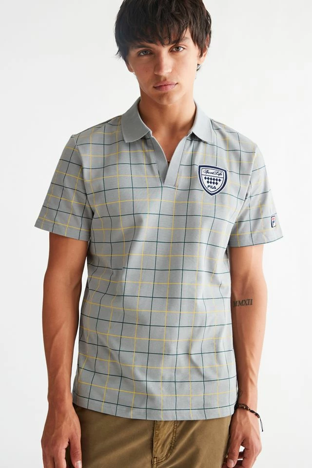 Short sleeve shirt by FILA cut from cotton and topped with an allover pattern. Includes a crest motif at the left chest. Fitted with a classic polo style collar.