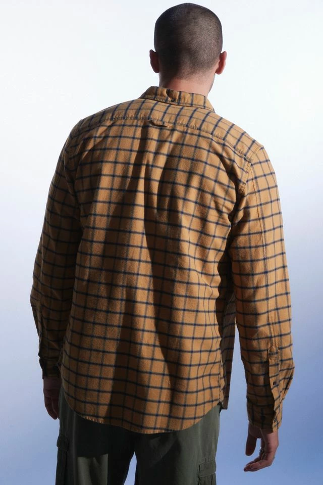 Flannel pattern button-down shirt by Fjallraven. Long sleeve shirt with a left chest pocket and classic tab collar.