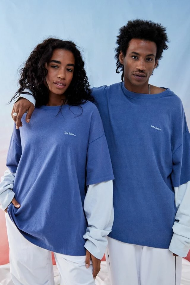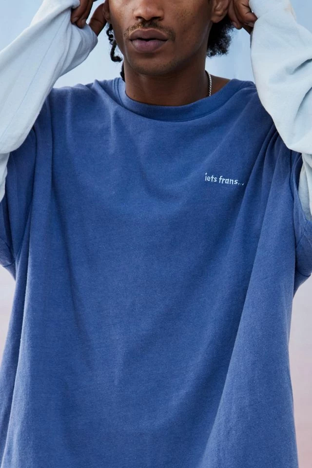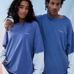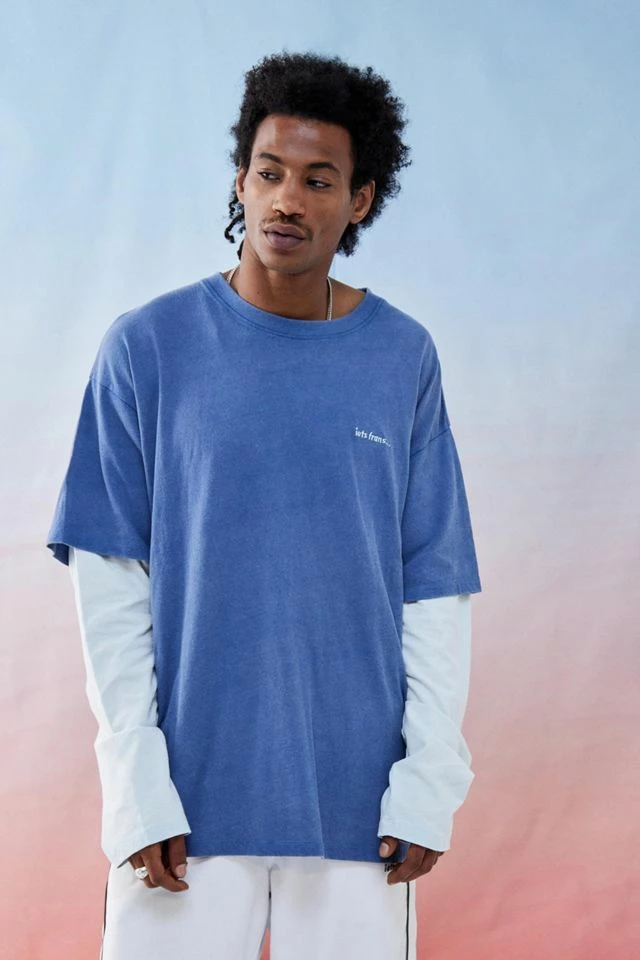 Chilled skate tee by iets frans… complete with a layered long and short-sleeved design in contrasting colours. Oversized fit Ft. a ribbed crew neck, drop shoulders and a baggy fit through the body. Finished with a stitched logo to chest. Only at UO.