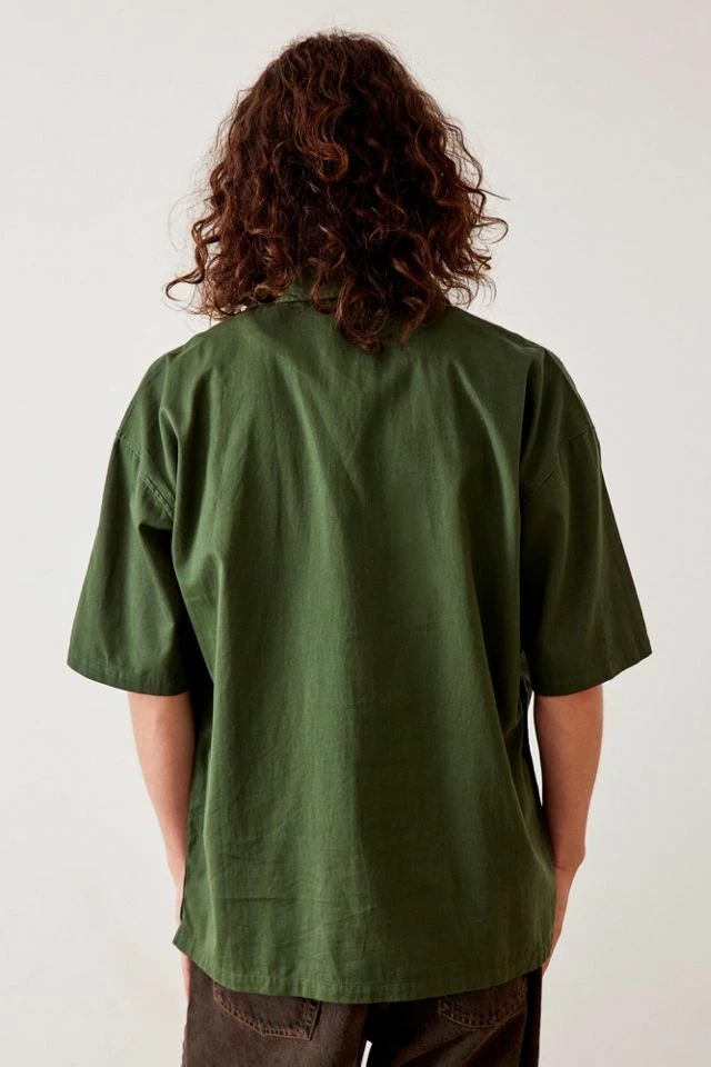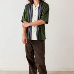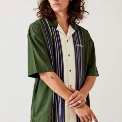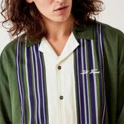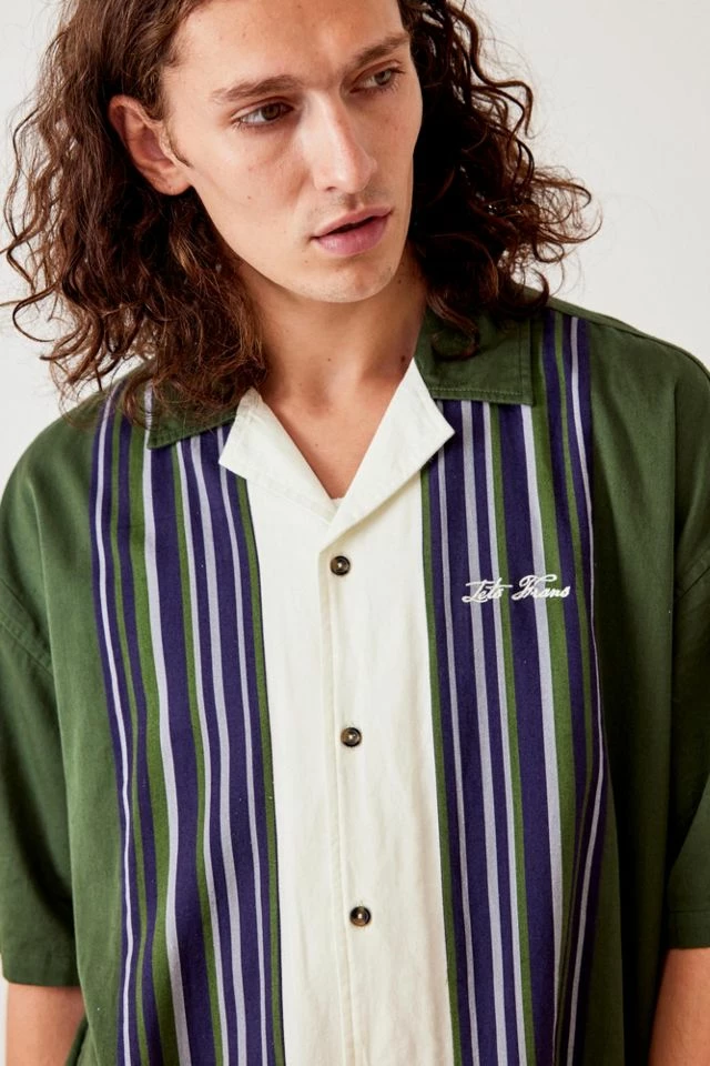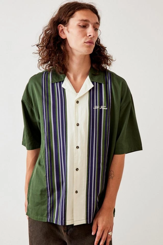 Step into the 50s with this classic bowling shirt by iets frans… Features a spread collar, button placket, drop shoulders and short sleeves. Complete with a breast pocket, stripe detailing and small embroidered logo. Only at UO.