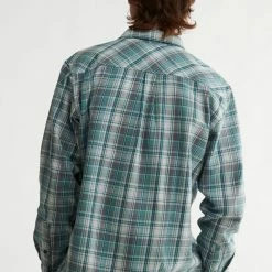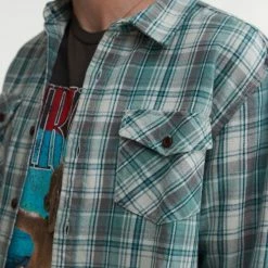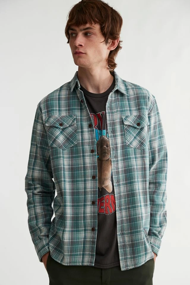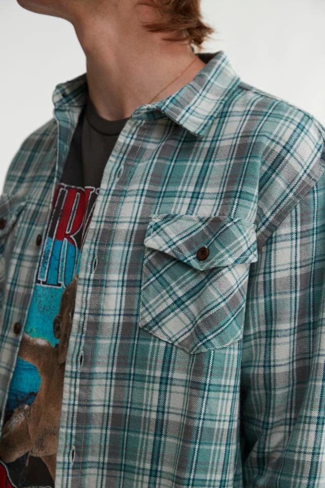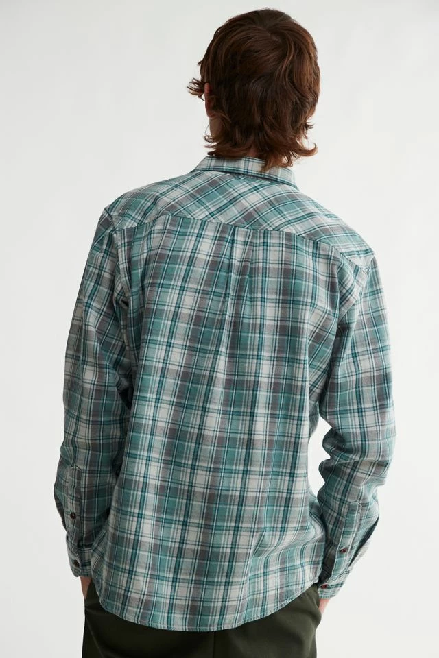 Flannel pattern shirt by Katin with a button-down front. Long sleeve style topped with two buttoned flap pockets at the chest & a classic tab collar.