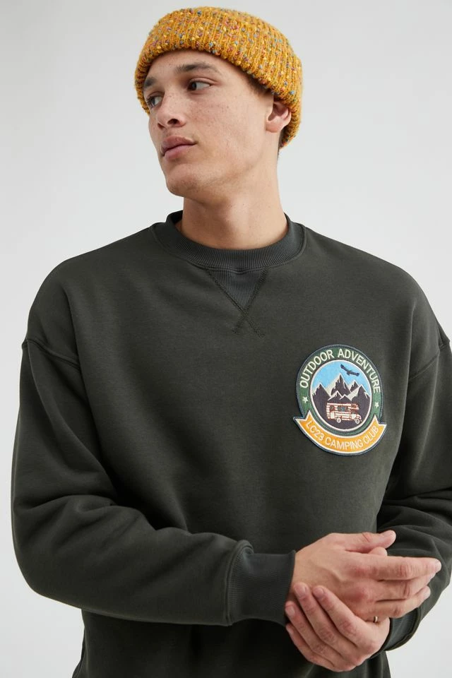 Crew neck sweatshirt by LC23 in a classic pullover style. Topped with an embroidered patch at the left chest. Finished with ribbed knit trims.