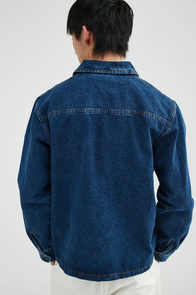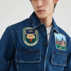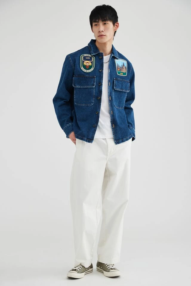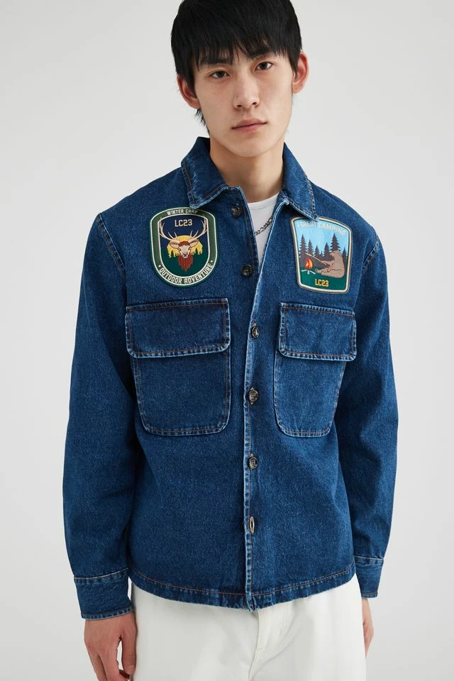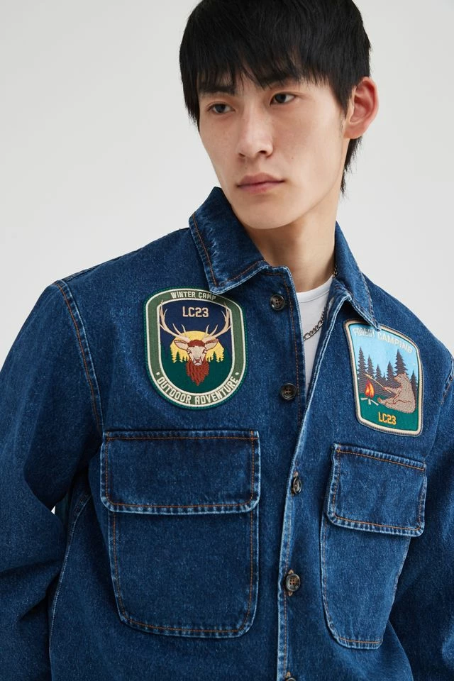 Overshirt by LC23 in a denim fabrication. Fitted with a button-down front and button fastening at the cuffs. Topped with two flap pockets at the chest and embroidered patch detailing. Finished with a tab collar.