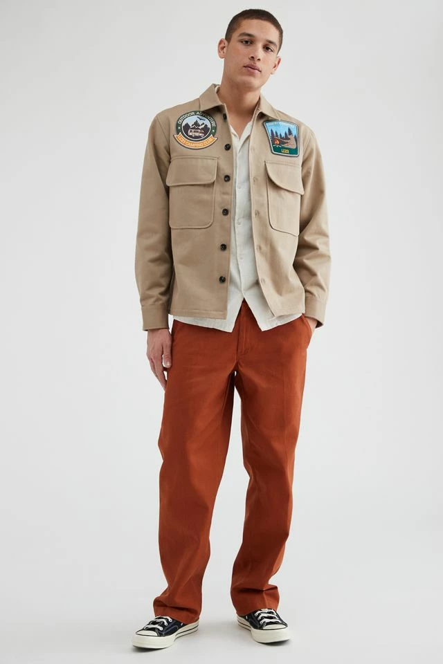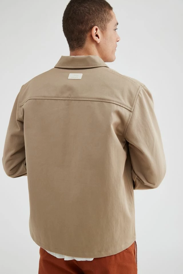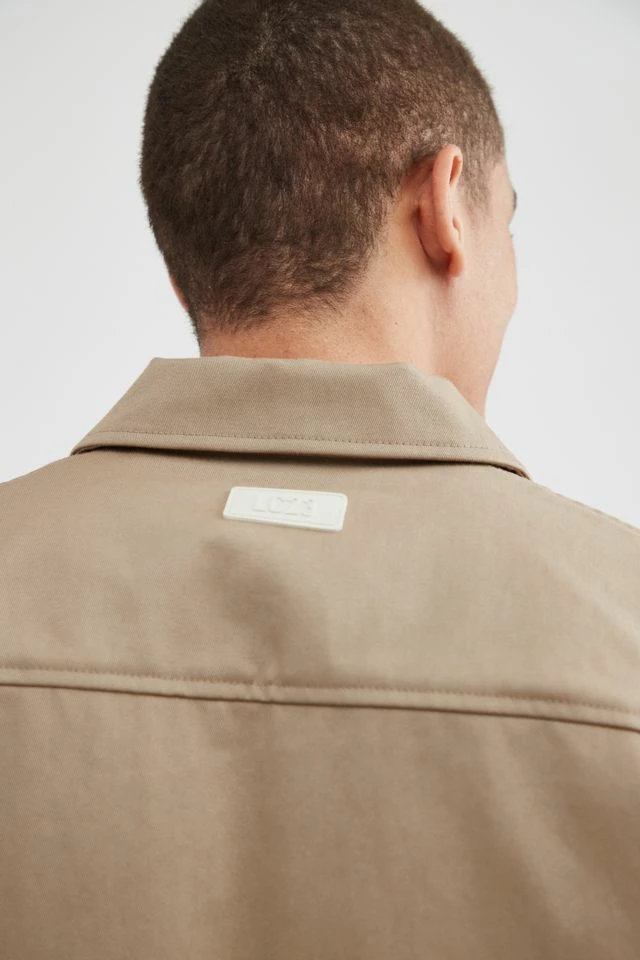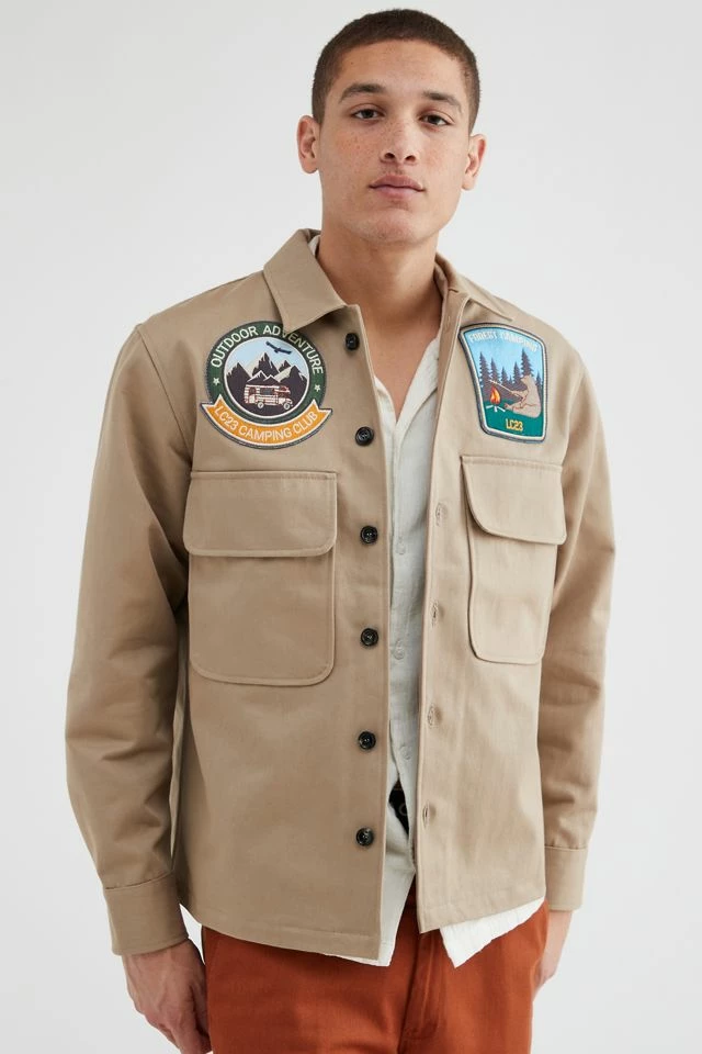 Overshirt by LC23 in a cotton canvas fabrication. Fitted with a button-down front and button fastening at the cuffs. Topped with two flap pockets at the chest and embroidered patch detailing. Finished with a tab collar.