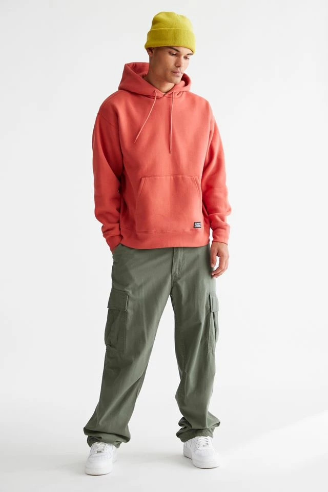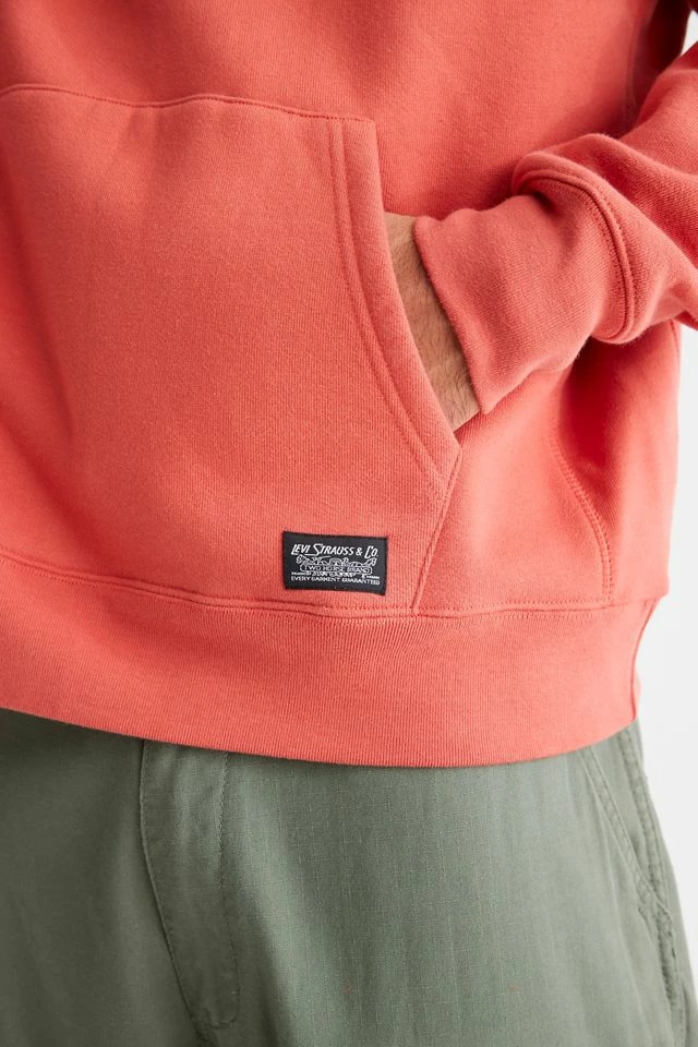 Pullover hoodie by Vans topped with a woven logo label accent. Sweatshirt fitted with an adjustable hood and includes a pouch pocket and ribbed knit trims.