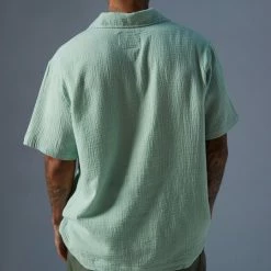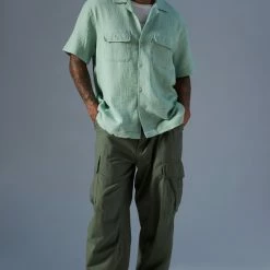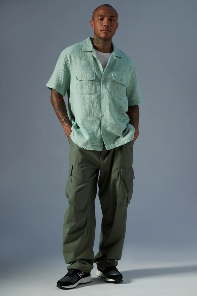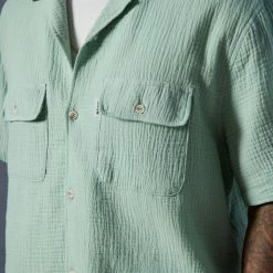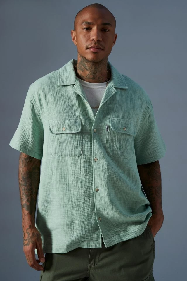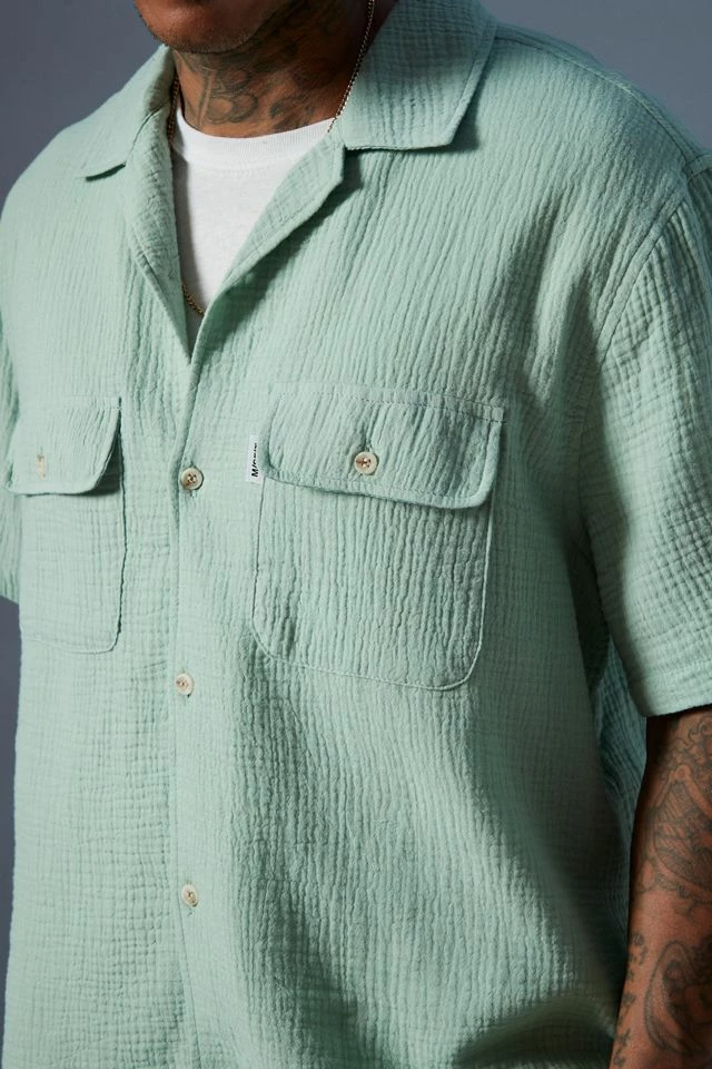 Short sleeve shirt by M/SF/T. Relaxed fit with flap pockets at the chest and fitted with a notched collar.