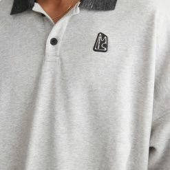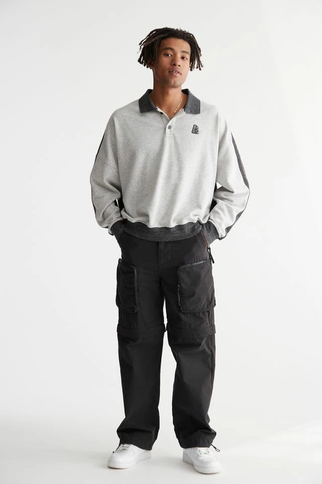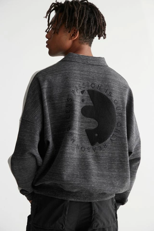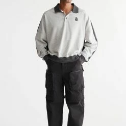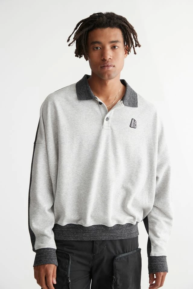 Two-tone sweatshirt by Magnlens with a logo accent at the left chest. Pullover style in a shrunken & boxy silhouette with a partial button front and tab collar. Finished with contrast trims.