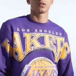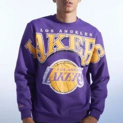 Promo ๐Ÿคฉ Men’s Mitchell & Ness NBA Stretch Los Angeles Lakers Crew Neck Sweatshirt Purple โœ”๏ธ