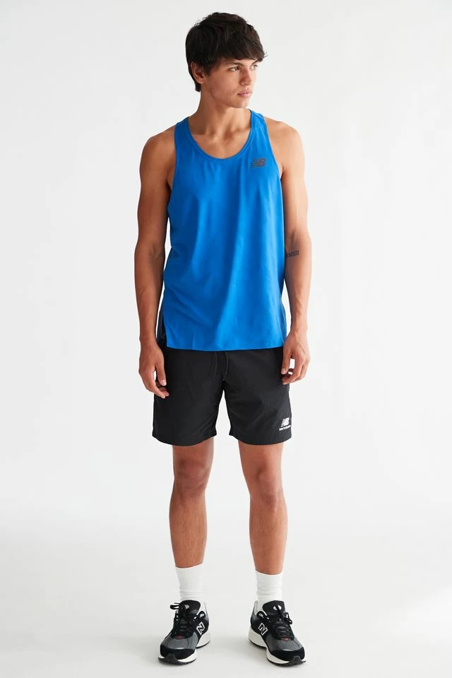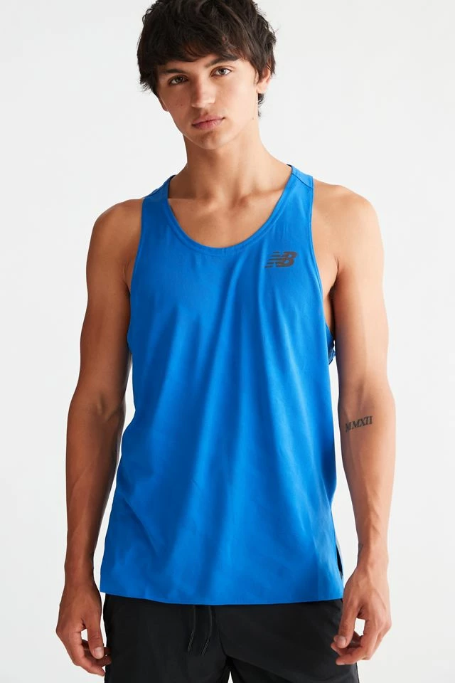 Jacquard knit tank top by innovative athletic label New Balance. Features NB ICEx technology that dries quick & keeps you cool. Sleeveless style in an athletic fit and finished with a curved hem.
