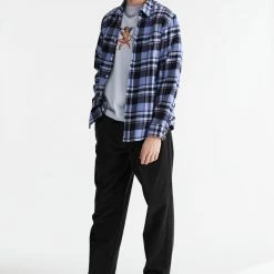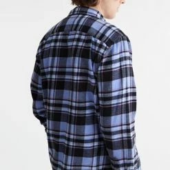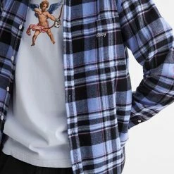 Long sleeve plaid pattern flannel shirt by OBEY. Topped with a left chest pocket & text embroidery. Fitted with a tab collar.