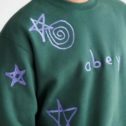 Pullover crew neck sweatshirt by OBEY. Topped with embroidered detailing at the front & back. Cotton poly sweatshirt fitted with ribbing trims.