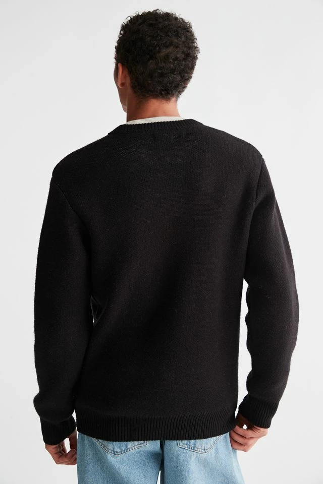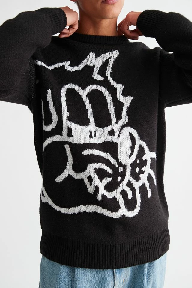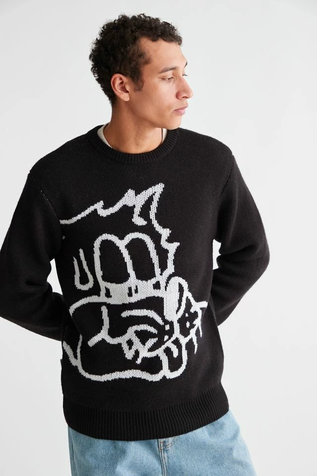 Graphic front patterned sweater from streetwear label OBEY. Pullover crew neck style fitted with ribbed knit trims.