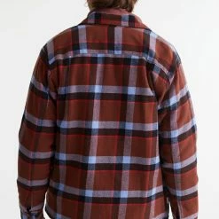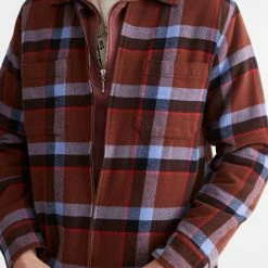 Lined shirt jacket by OBEY. Features an allover plaid pattern. Zip front style topped with patch pockets at the chest & fitted with a tab collar.