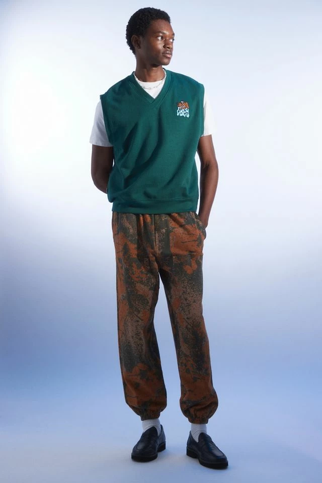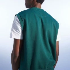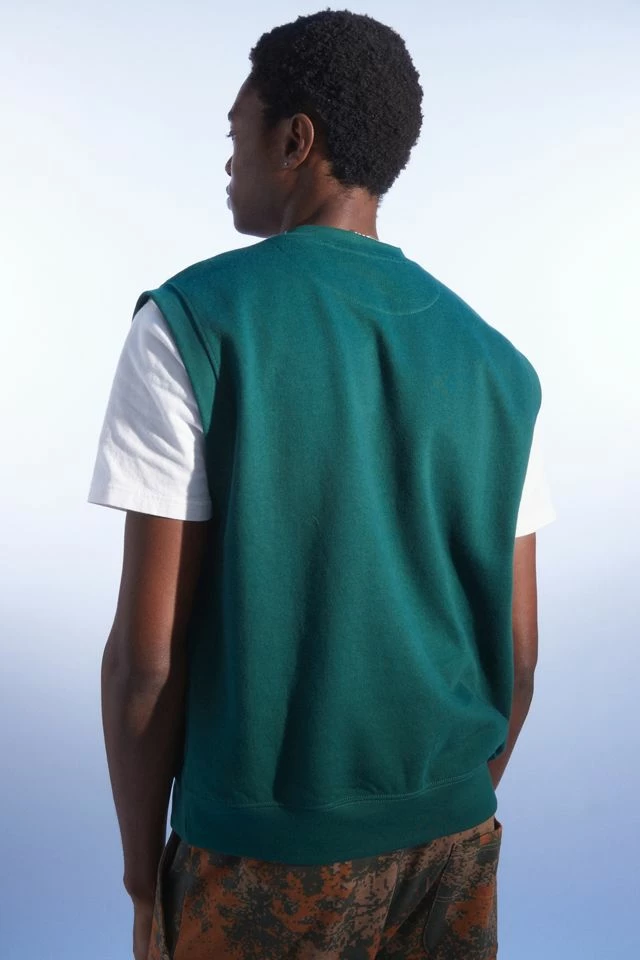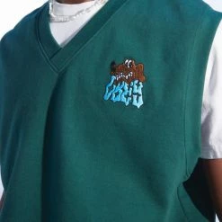 Vest by streetwear label OBEY with embroidery at the left chest. Sleeveless style with a v-neckline & ribbed knit trims.