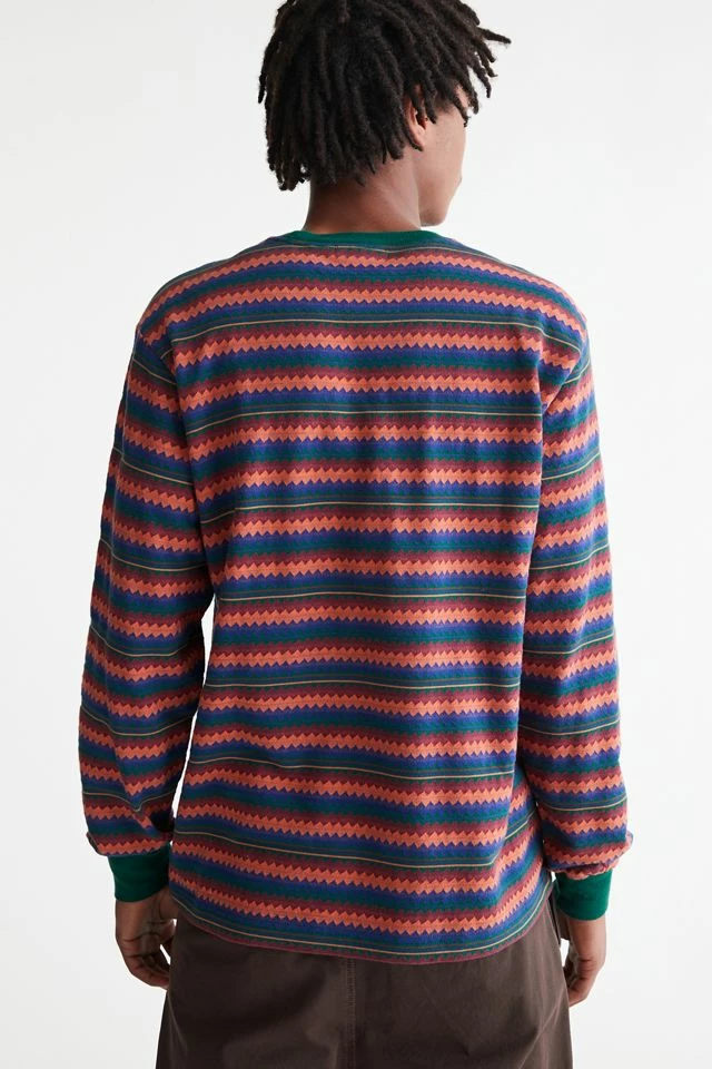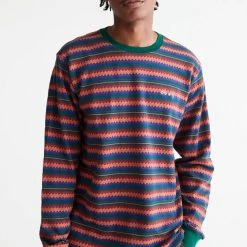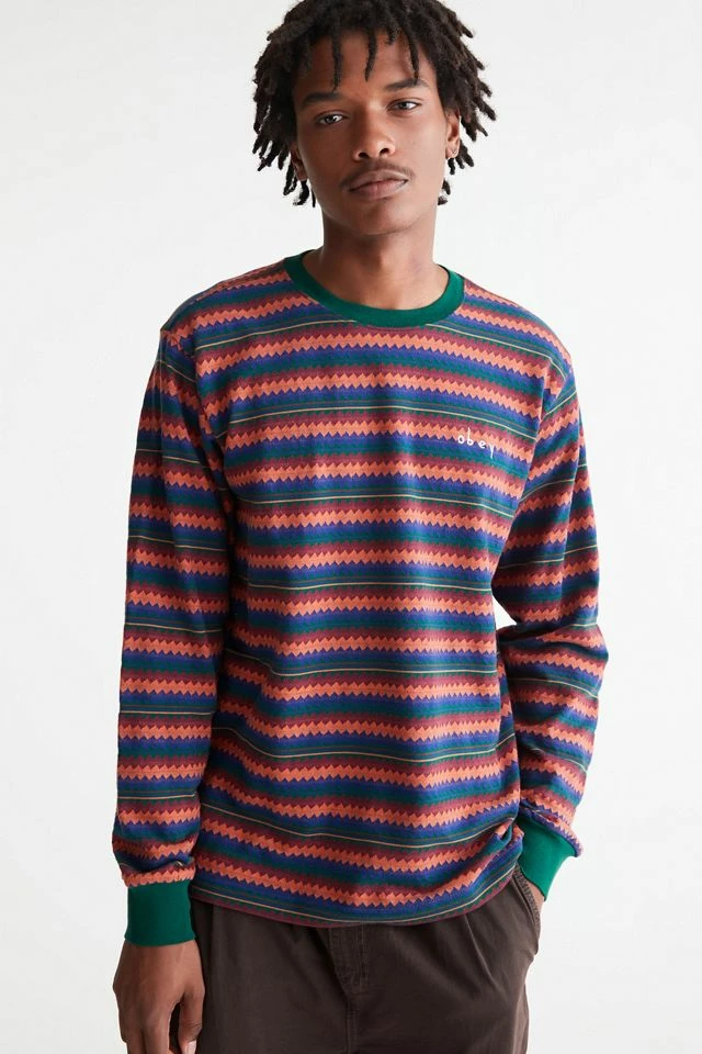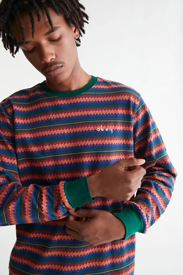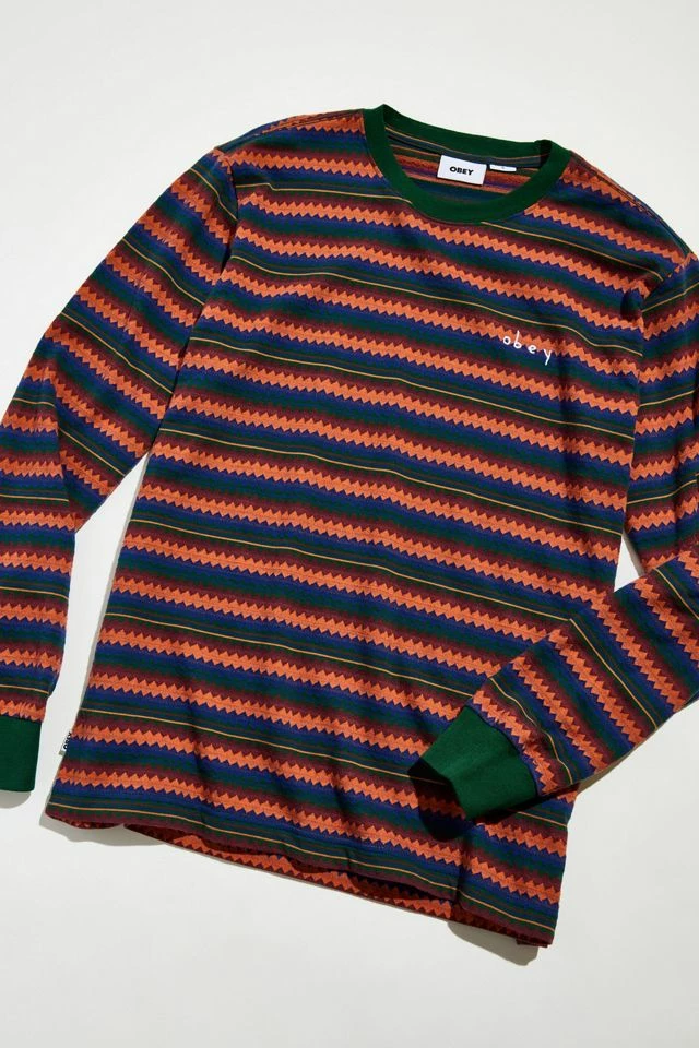 Striped long sleeve t-shirt by OBEY. Cotton tee with logo text at the left chest. Fitted with ribbed knit trims.