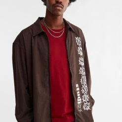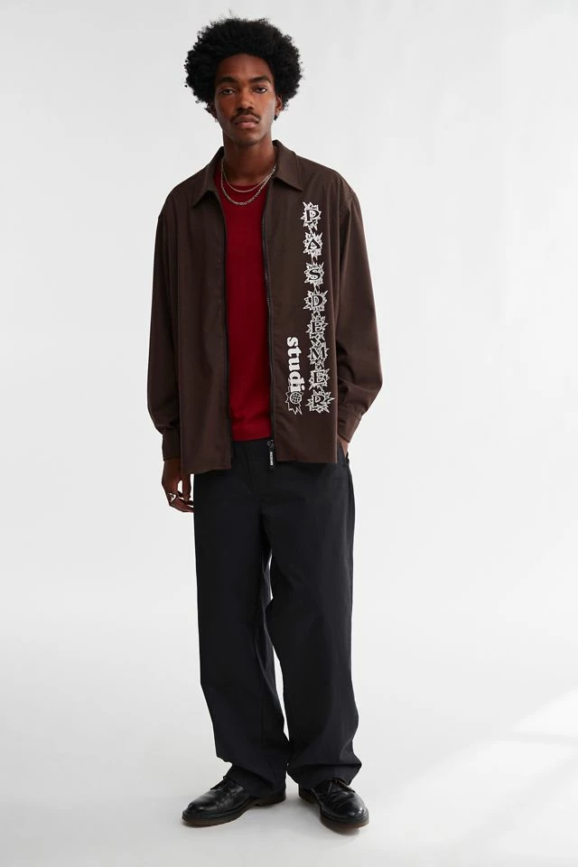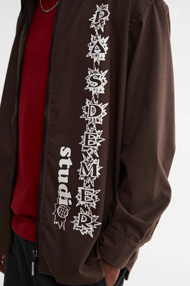 Full zip shirt by Pas de Mer with a tab collar. Topped with screen-print graphics at the front & back.