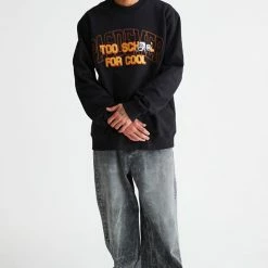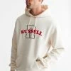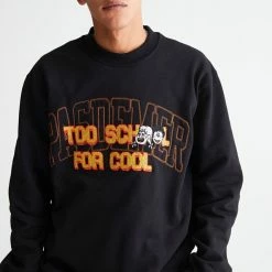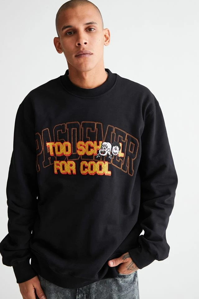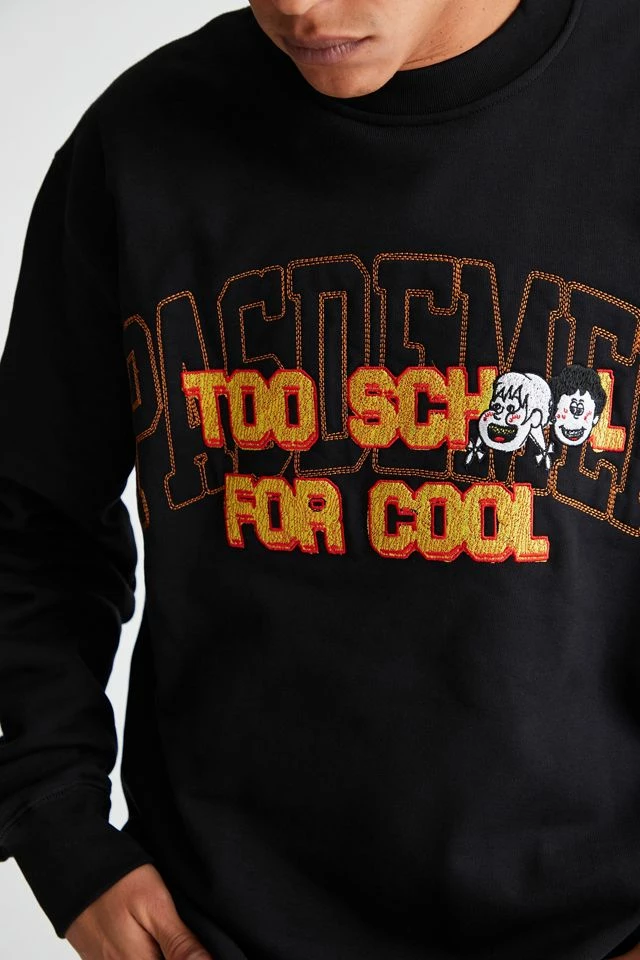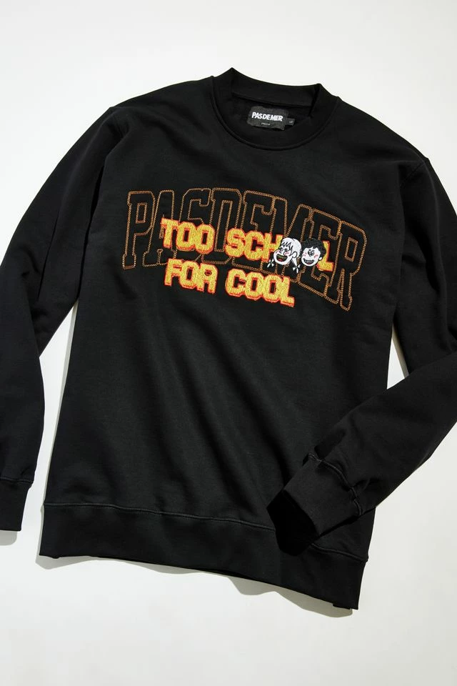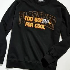 Pullover crew neck sweatshirt by Pas de Mer with a text graphic printed at the front. Cotton blend sweatshirt finished with ribbed knit trims.