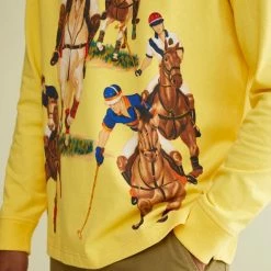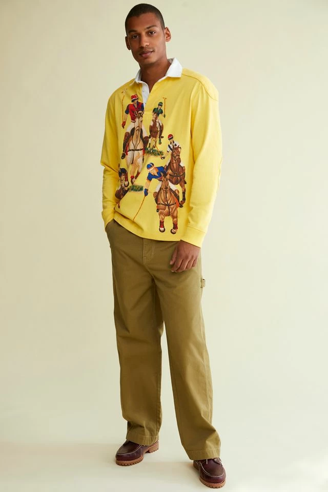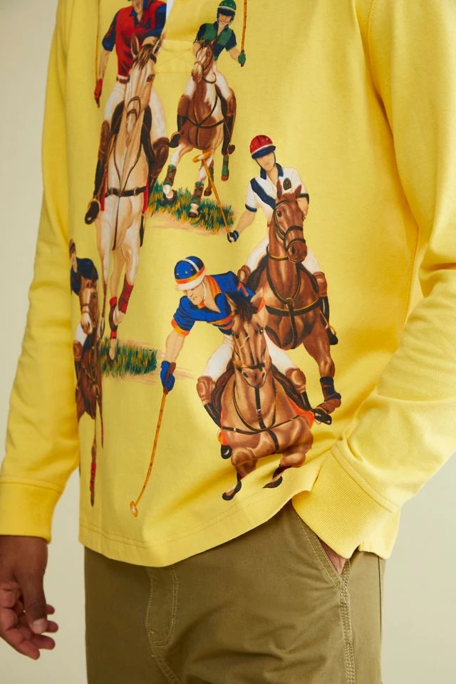 Printed shirt by Polo Ralph Lauren. Cut from cotton in a regular fit with long sleeves and ribbed knit cuffs. Fitted with a partial button placket front & classic polo tab collar.