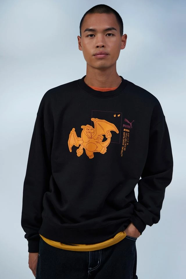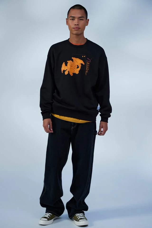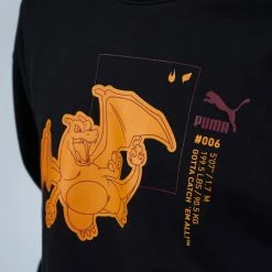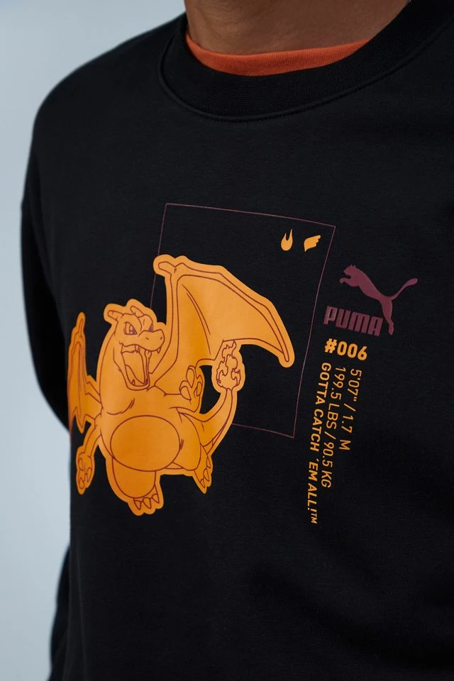 Crew neck sweatshirt from Puma topped with a Pokémon graphic printed at the front. Pullover style with ribbing trims at the cuffs, hem & neck.