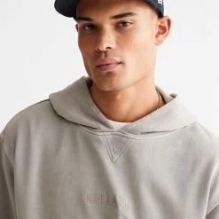 Pullover cotton hoodie from Rolla’s. Tonal logo sweatshirt fitted with a hood and finished with ribbed knit trims.