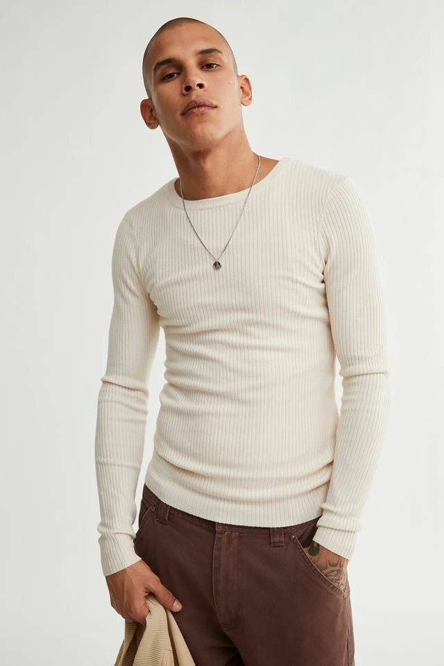 Ribbed knit sweater by Standard Cloth in a fitted silhouette. Long sleeve style with a crew neck. Urban Outfitters exclusive.