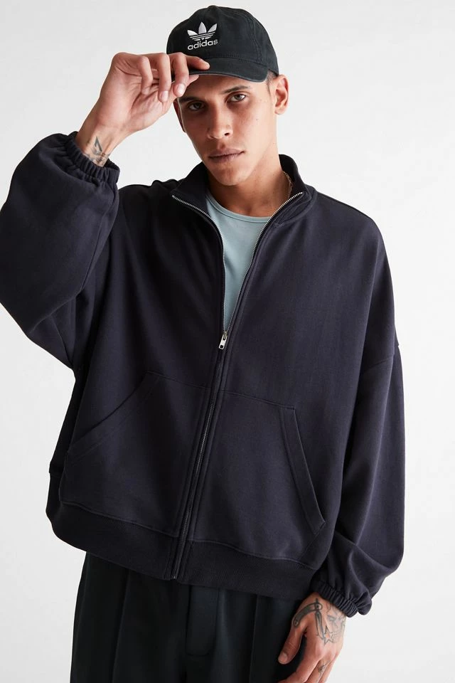 Oversized boxy fit sweatshirt by Standard Cloth with a mock neck and full zip front closure. Relaxed style with pockets at the front and ribbed knit trims. Urban Outfitters exclusive.