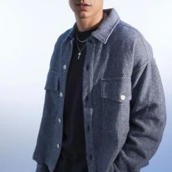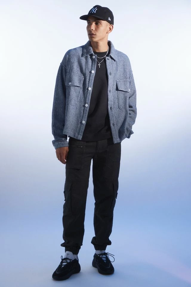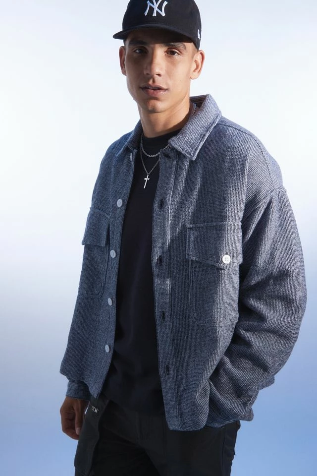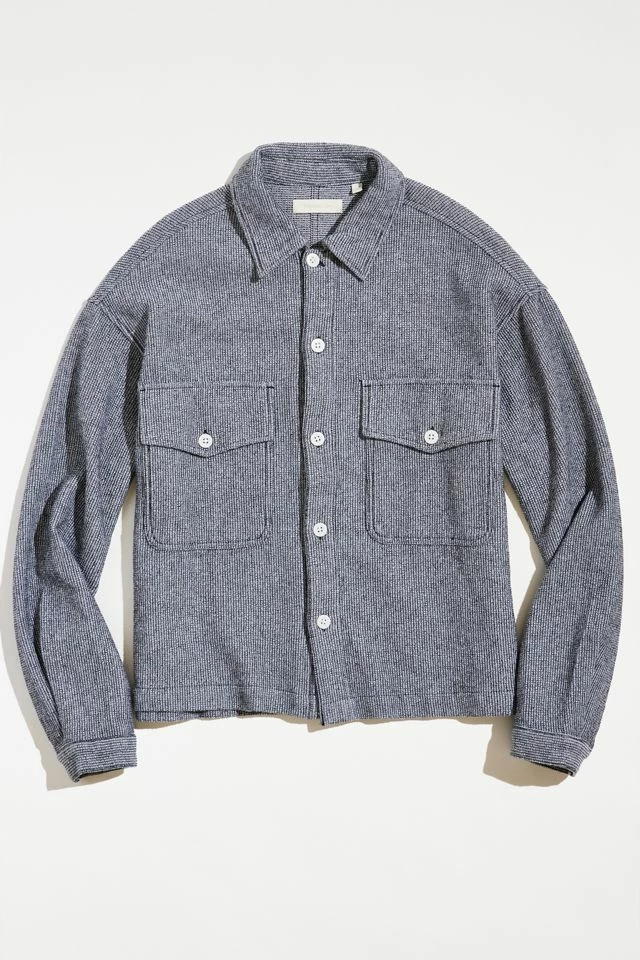 Waffle texture button-down overshirt by Standard Cloth. Long sleeve shirt topped with flap pockets at the chest and fitted with a tab collar. Urban Outfitters exclusive.